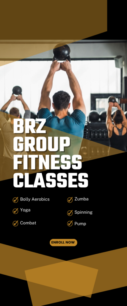 Welcome to BRZ Group Fitness. Our classes provide a fun, celebratory environment where fitness and enjoyment come together. We design our group exercise programs to meet a variety of fitness goals, ensuring there is an option for every member. Join us on a journey toward improved health and happiness. Through a dynamic class schedule, we aim to motivate and energize members as we work toward individual fitness goals.